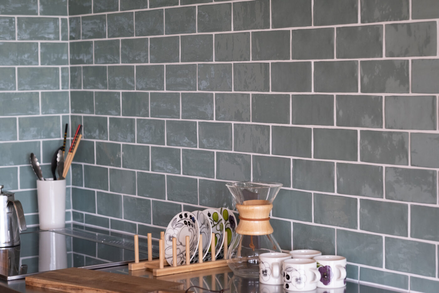 外観は隣家に寄せて、オガスタグレーの着色としました。