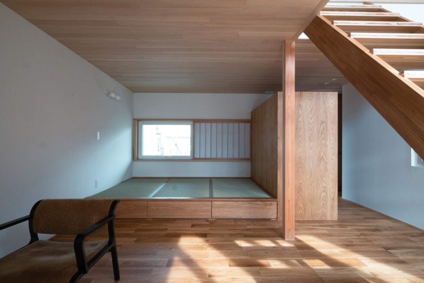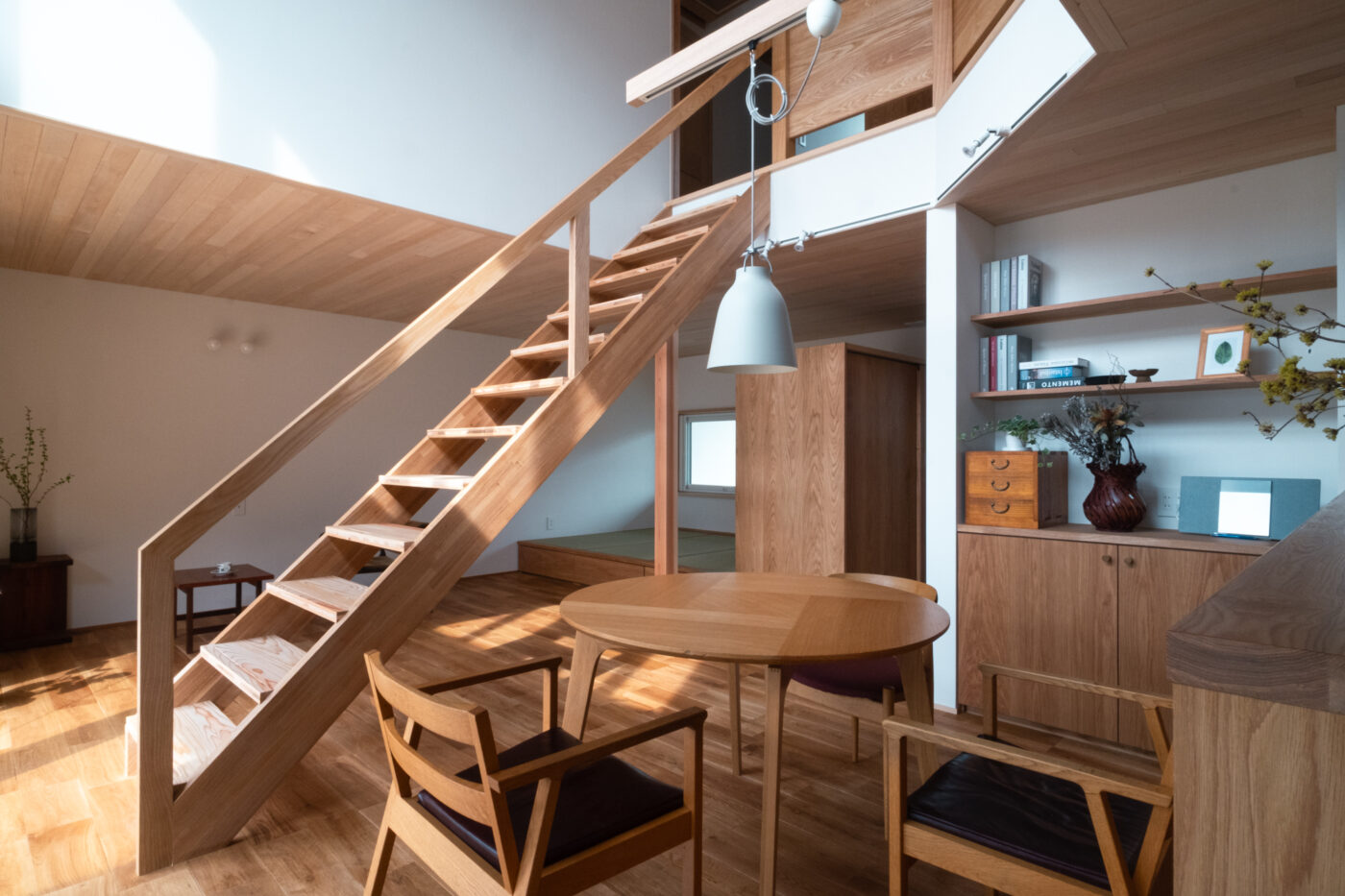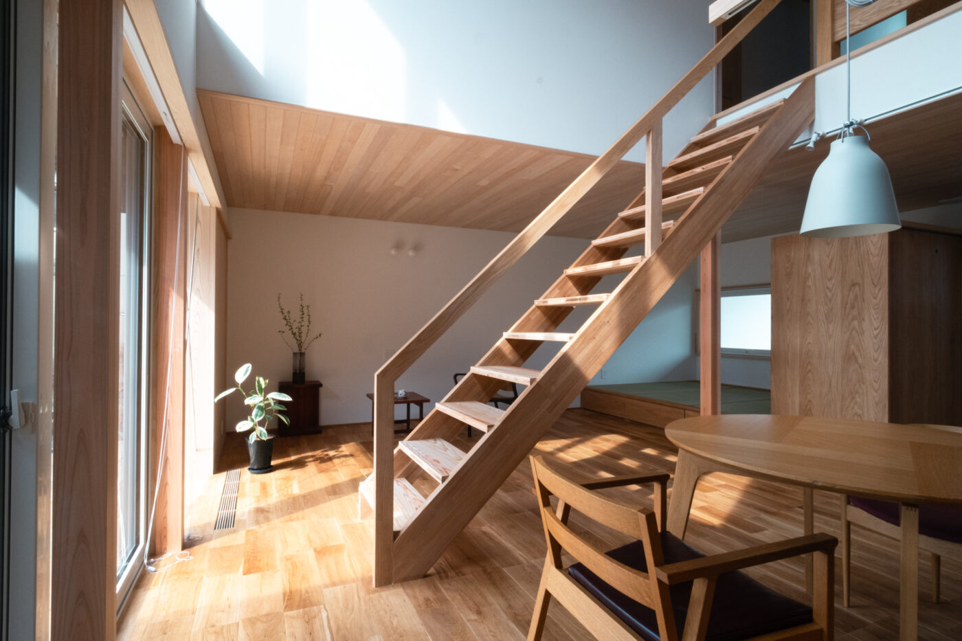 小屋裏空間や勾配天井を組み合わせた、立体的で合理的な空間構成もご覧ください。
