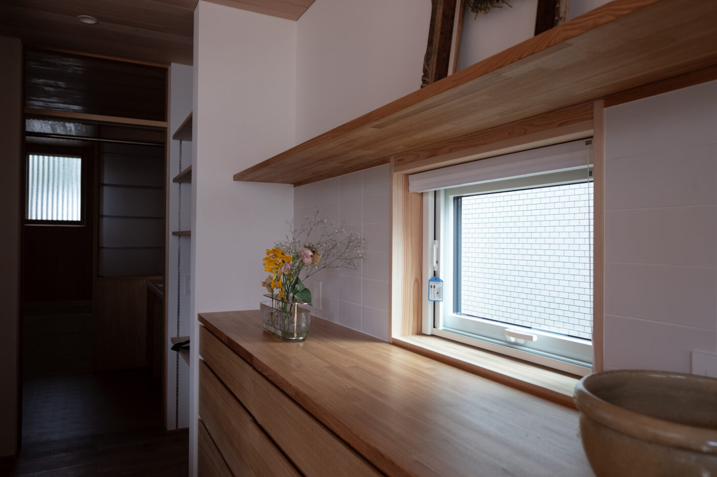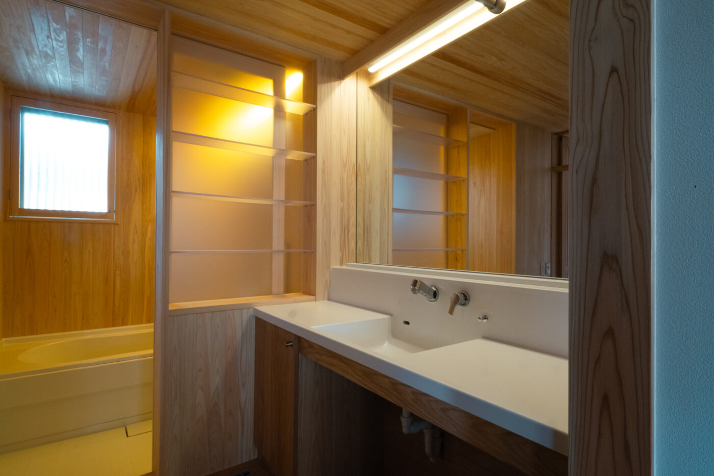 脱衣室と一体で計画した美しく落ち着いた水回りも見所です。